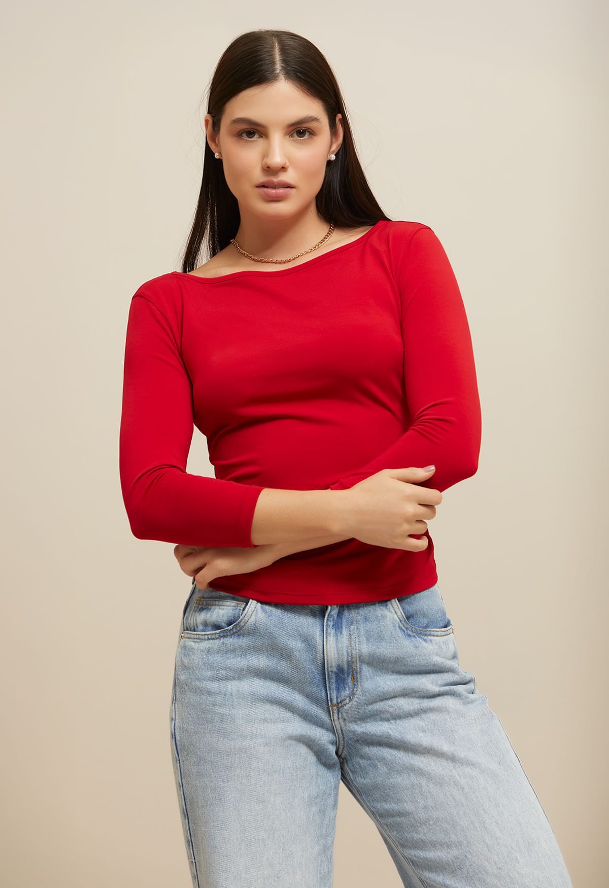 Blusa manga 3/4 escote ojal