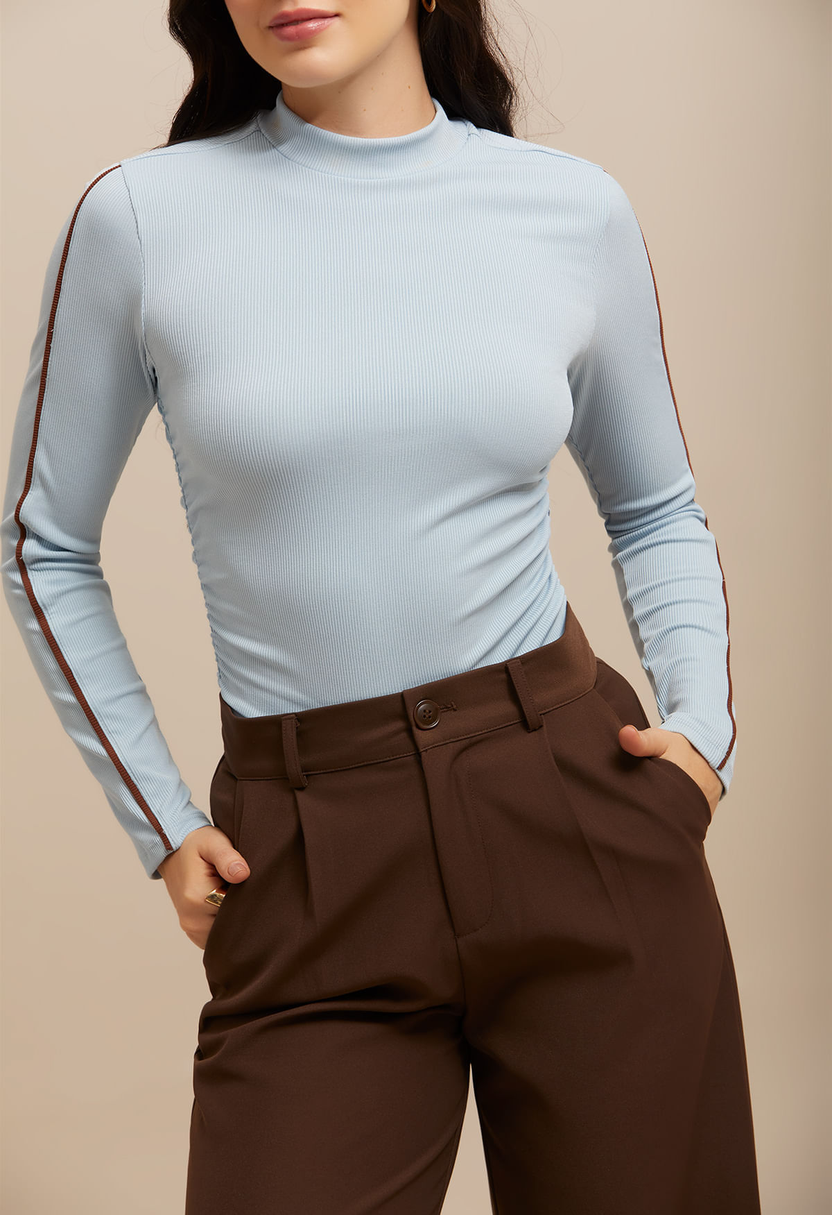 Blusa manga larga cuello alto para mujer s azulceleste - Imagen principal